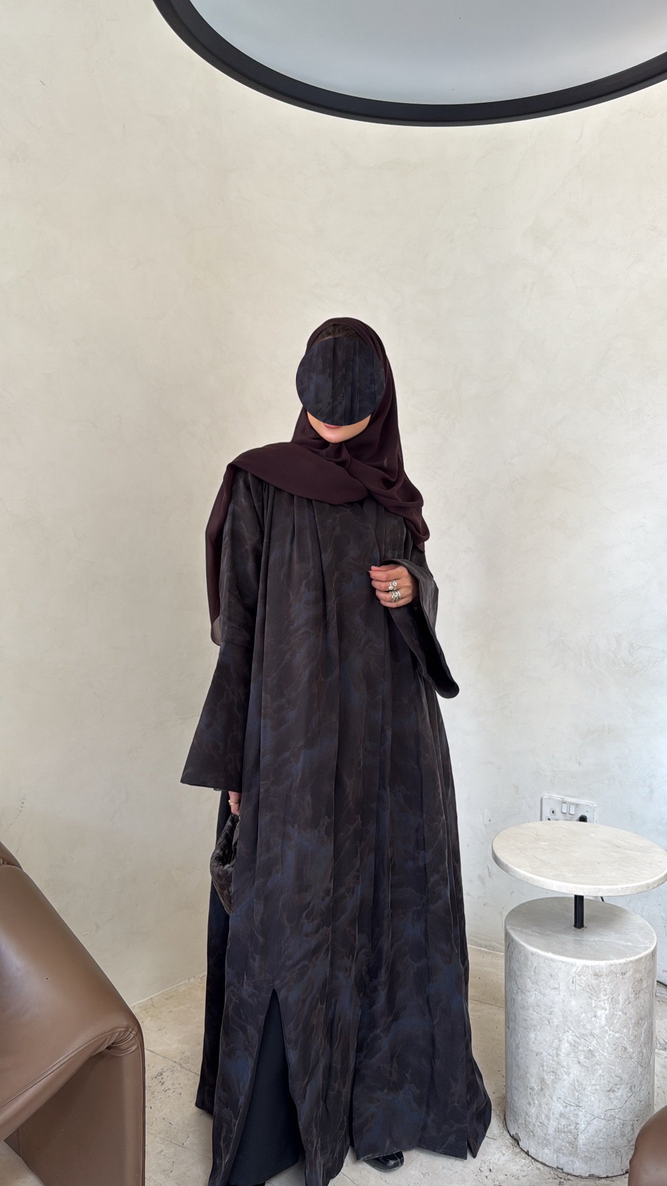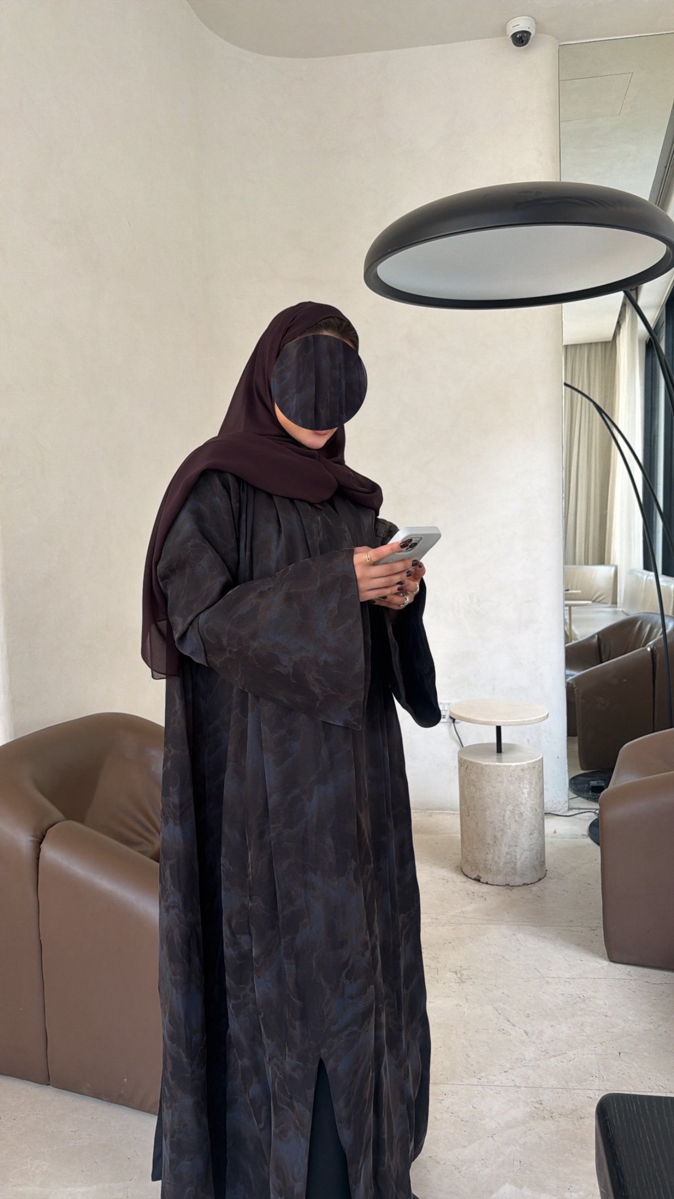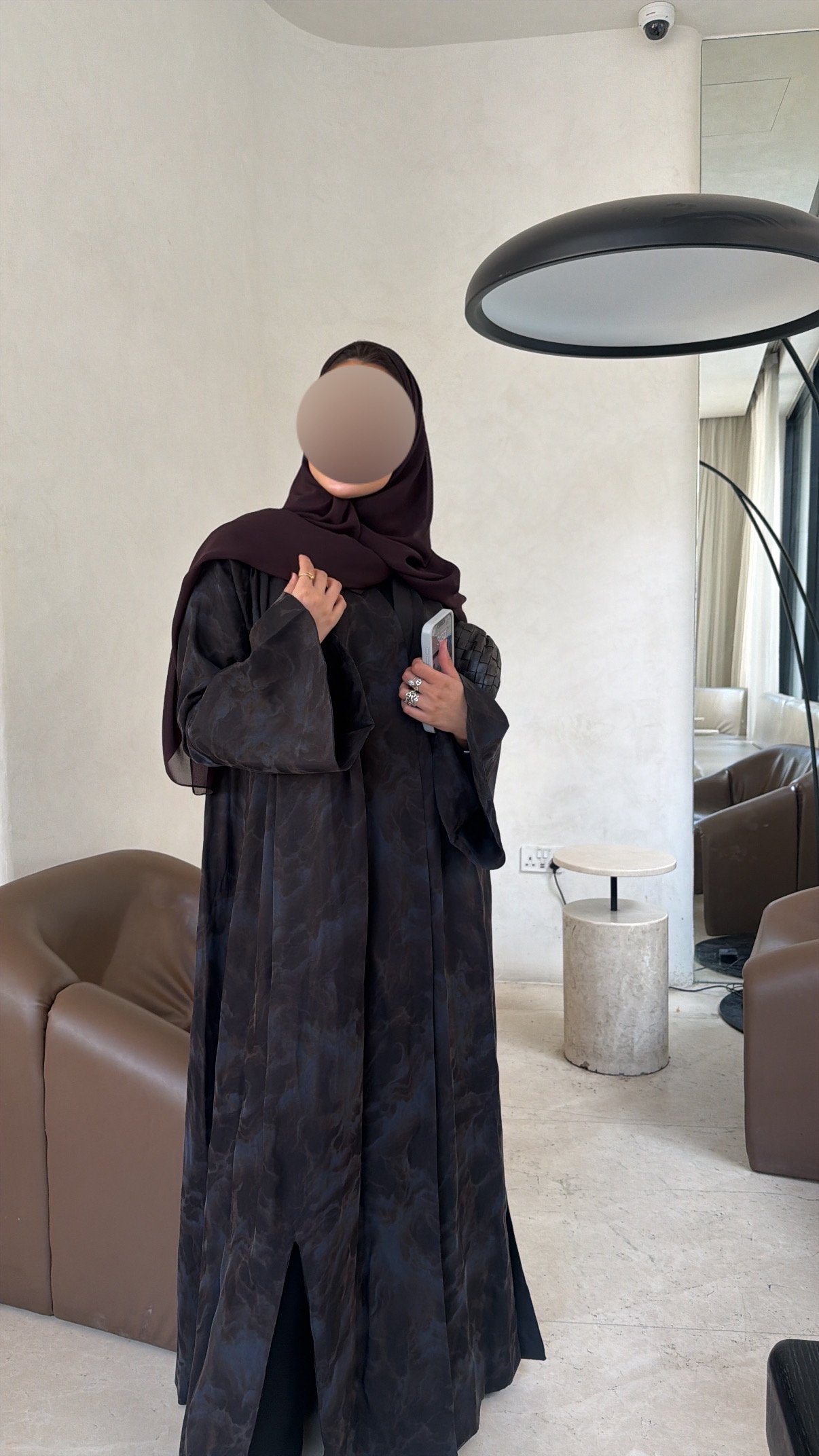 عباية حرير بيور .. كسرات على الكتف فتحات امامية وخلفية .. مع ملفع