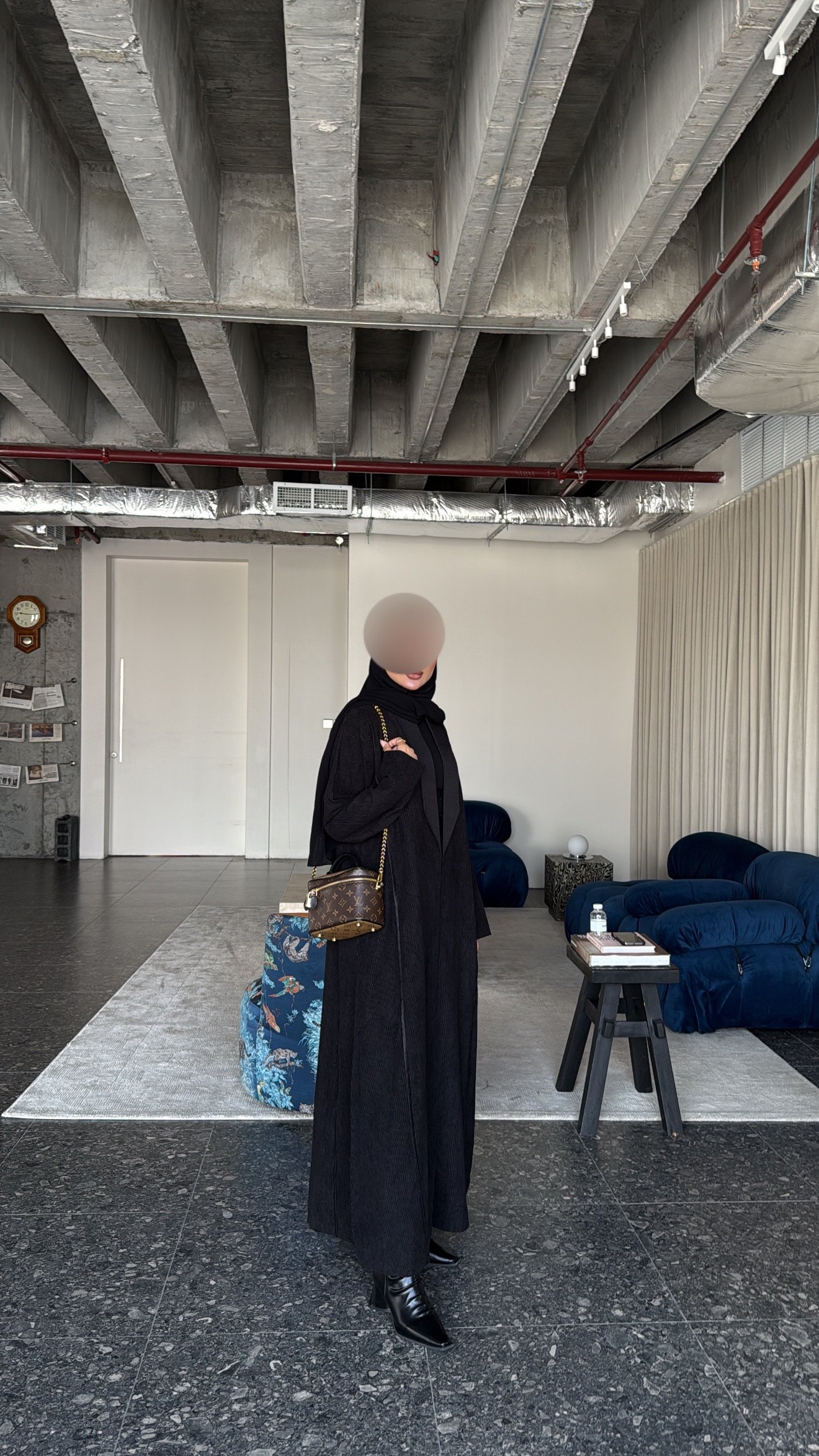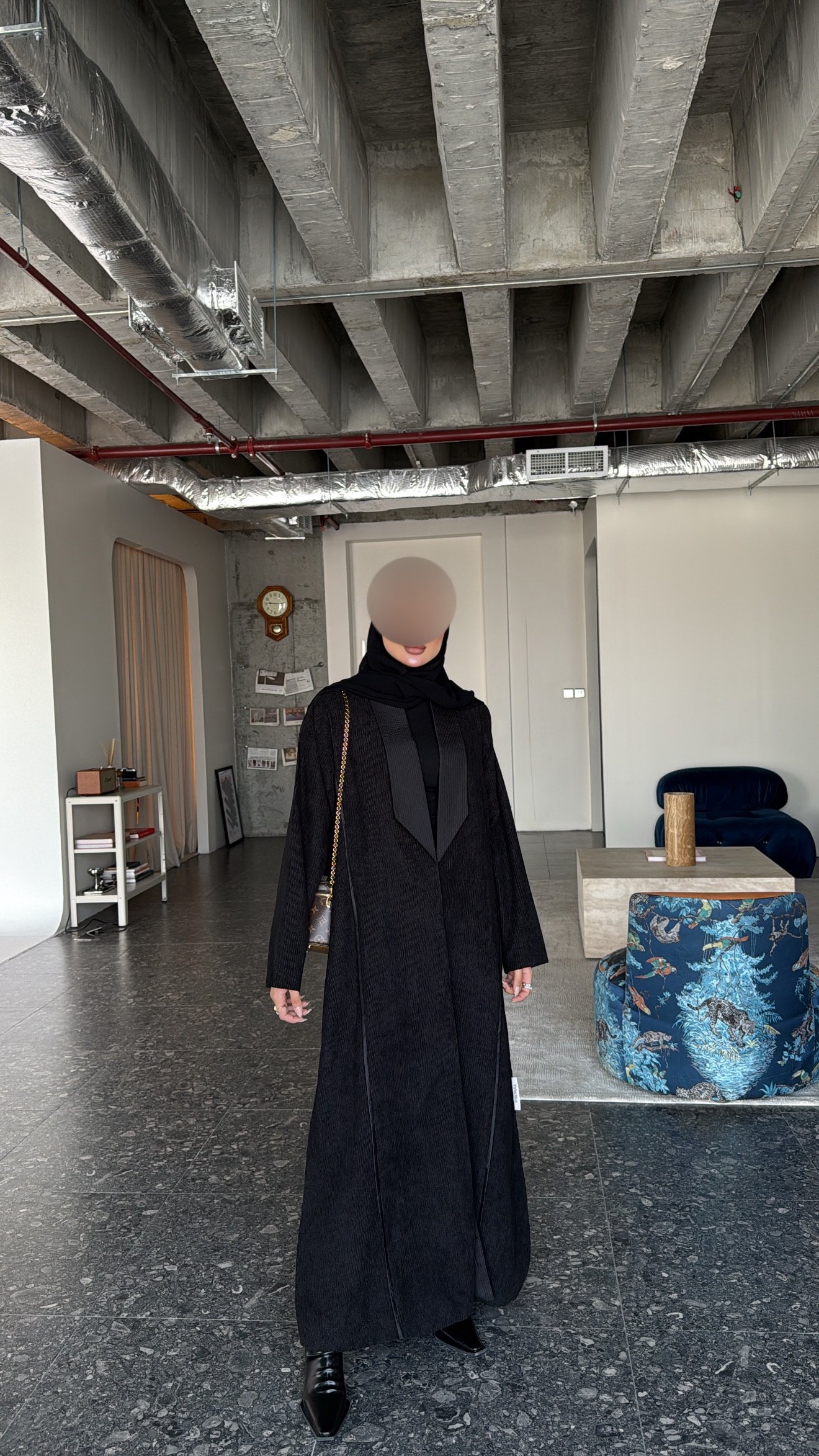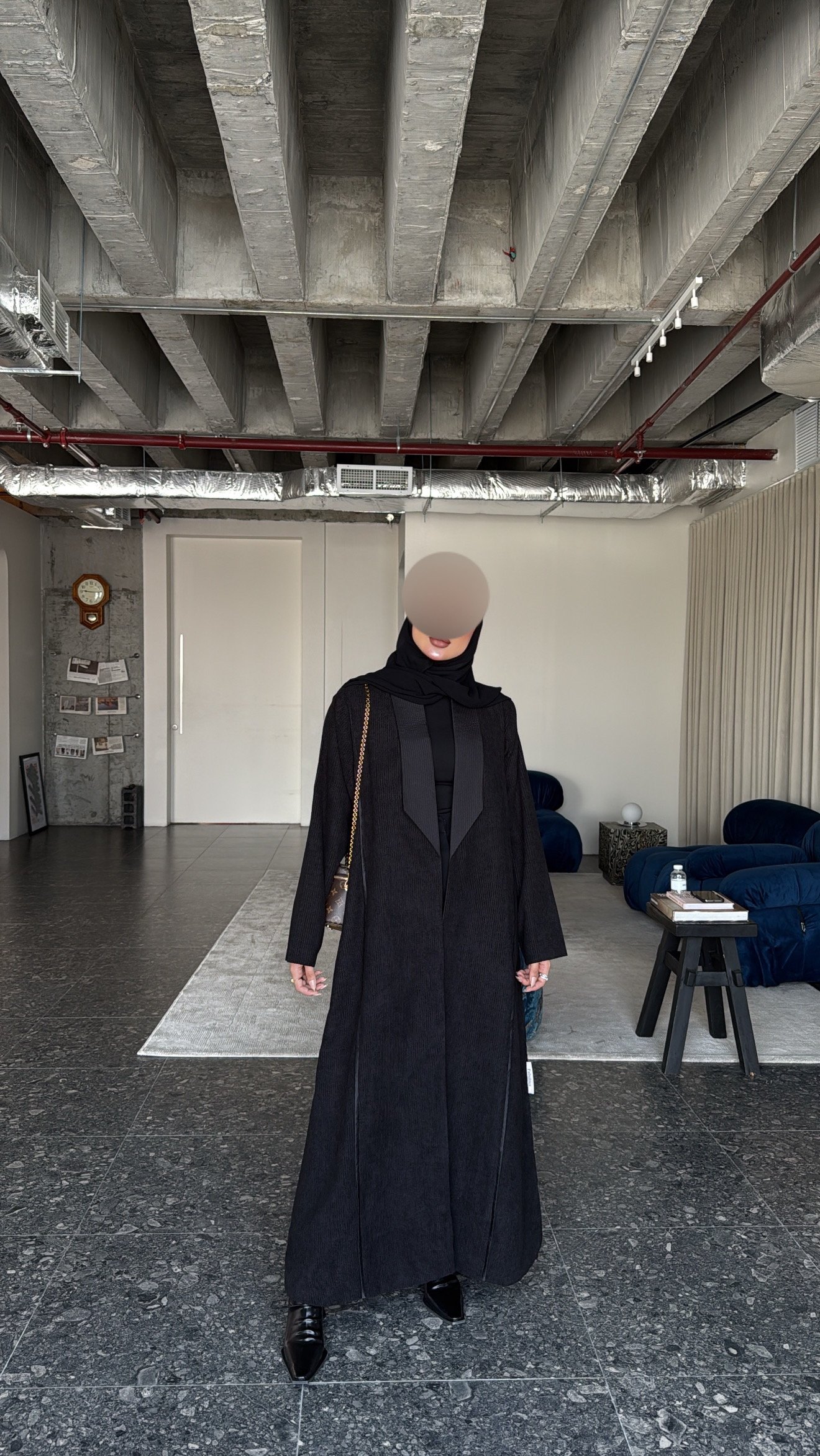 عباية بخام شتوي مخمل مقلم مع ملفع