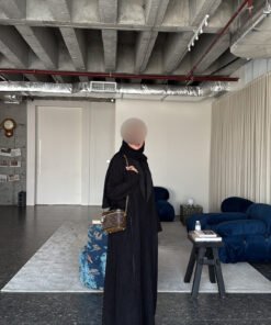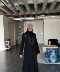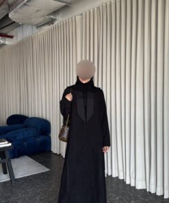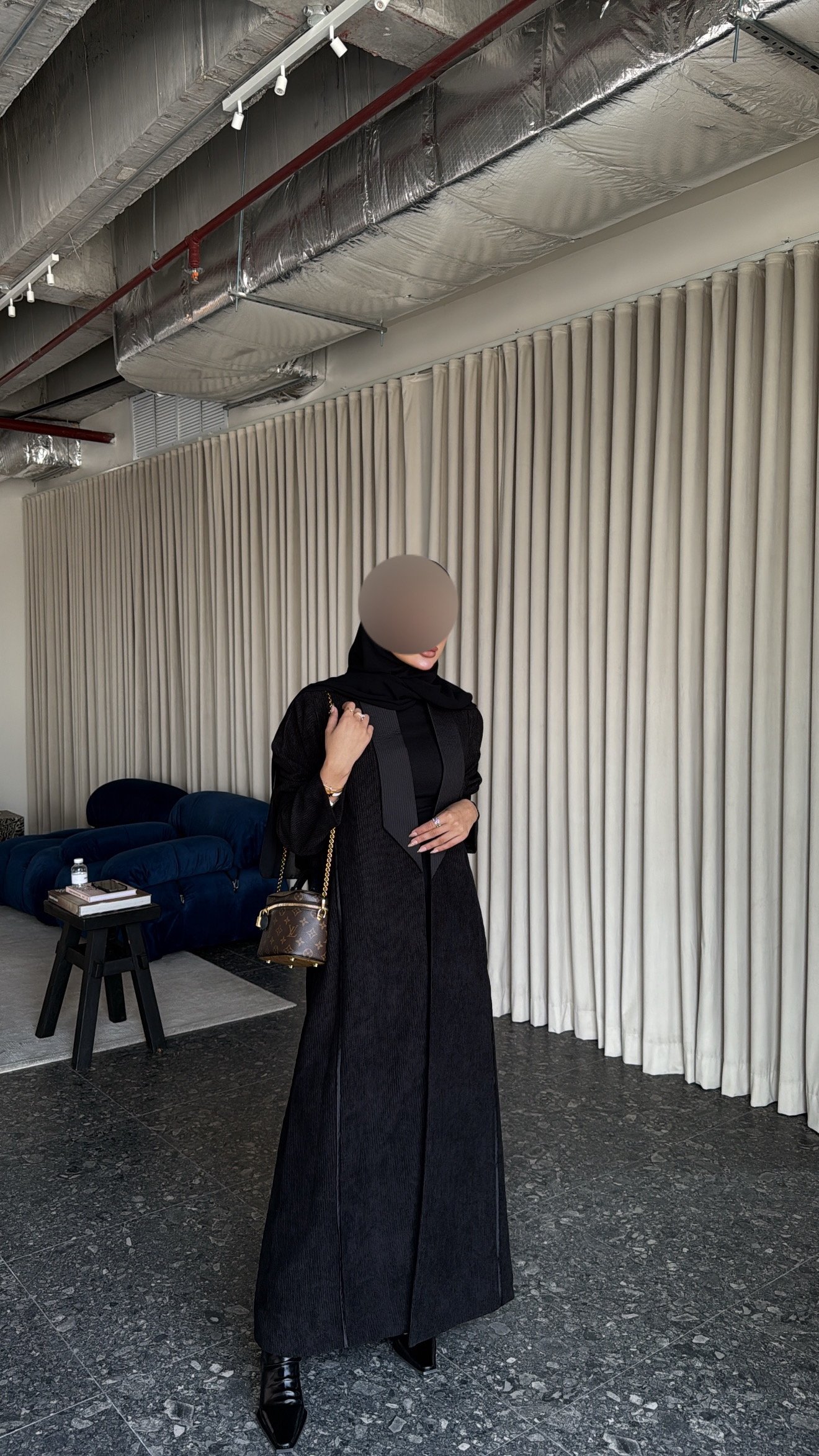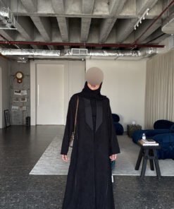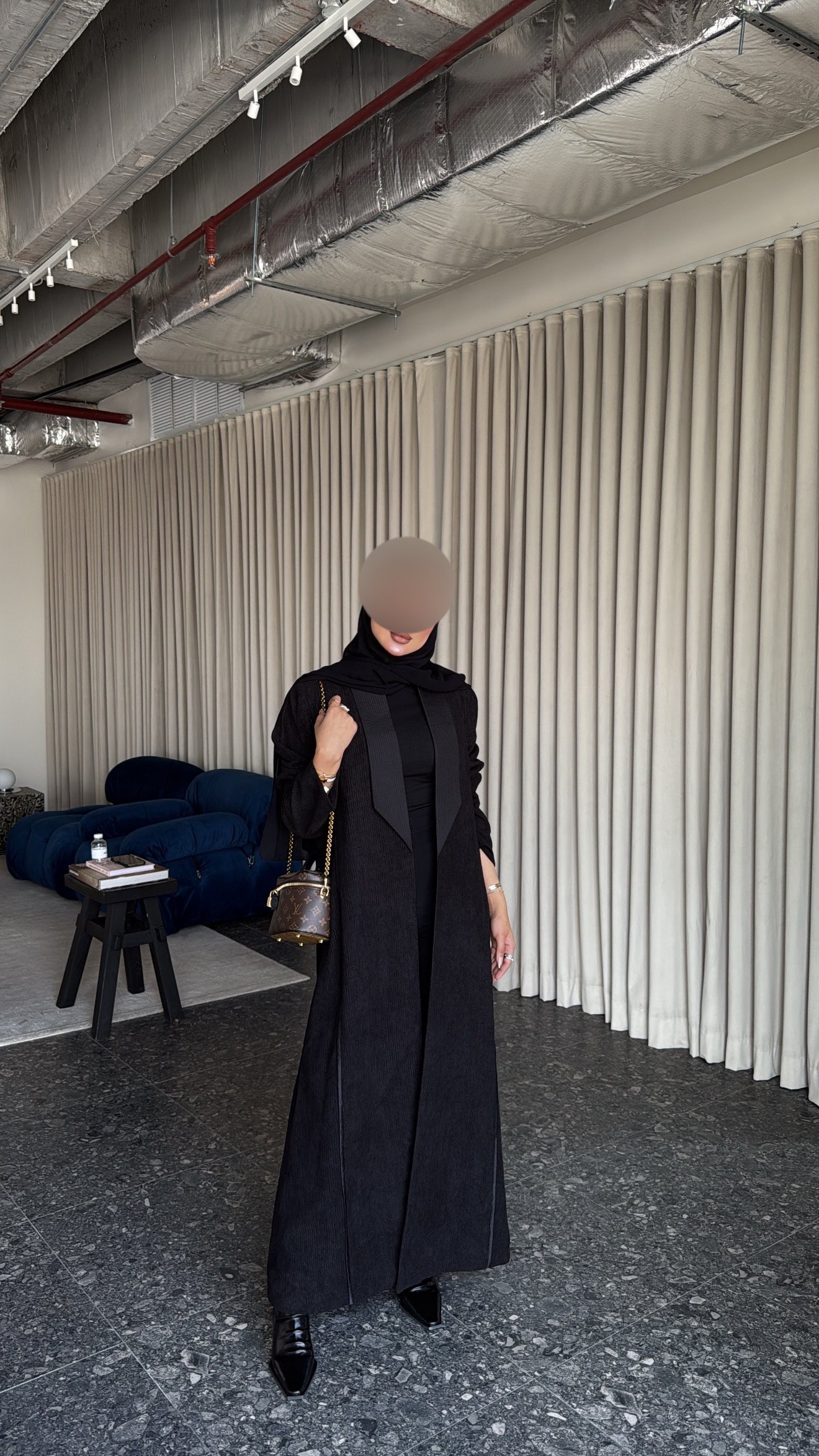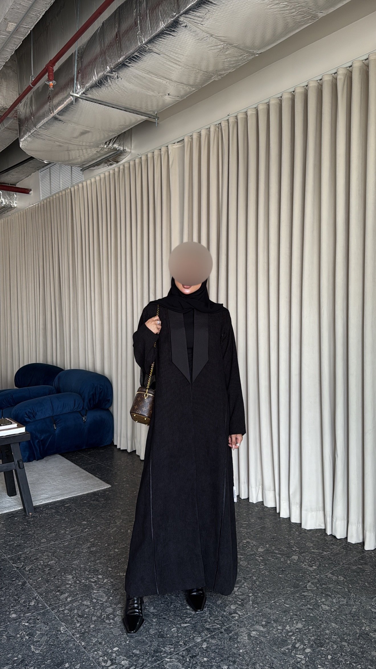 عباية بخام شتوي مخمل مقلم مع ملفع
